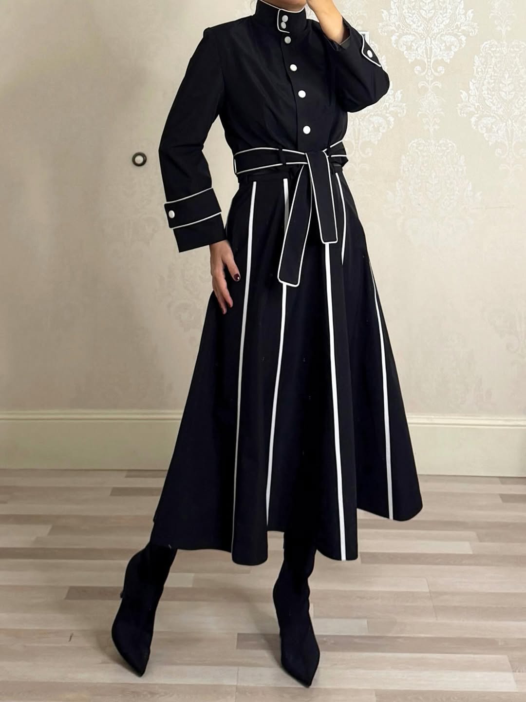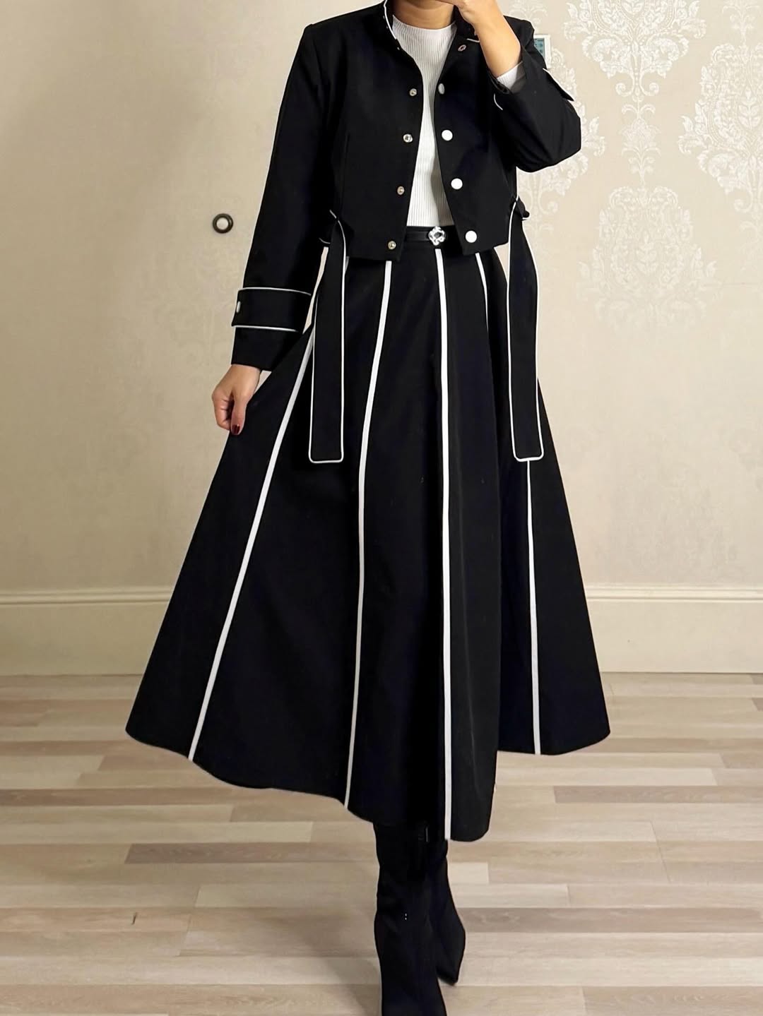 ست ترنچ کت و دامن جنس تی سی کت سایز 1 و 2 قد کت 52 قد آستین 60 سایز 1 دور سینه 98 سایز 2 دور سینه 104 دامن سایز 1و 2 و 3 قد دامن 88 سایز 1دور کمر 73 سایز 2 دور کمر 79 سایز 3 دور کمر 85